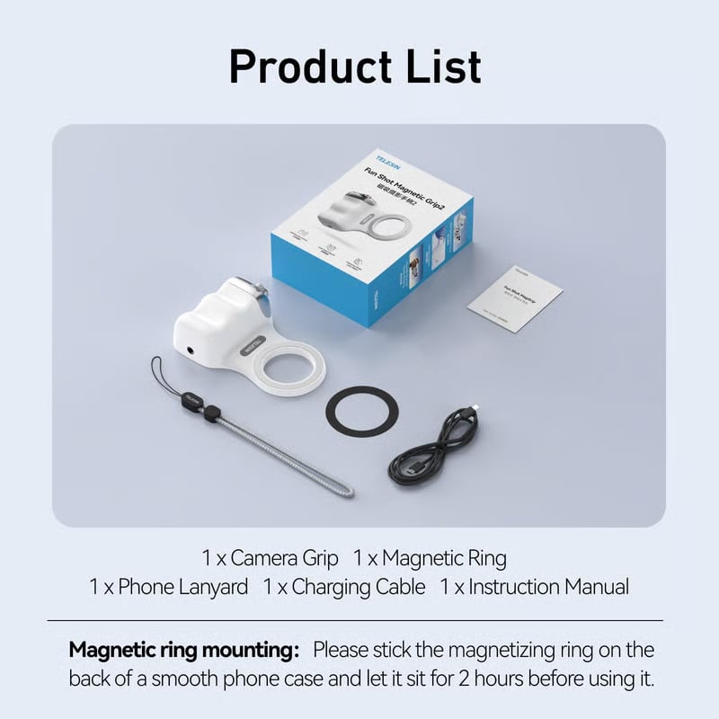 🌍 Lightweight, Universal & Perfect for Every Creator: Weighing just 109g, this compact grip is powerful yet travel-friendly. Compatible with iPhone and Android, it’s the ultimate tool for vloggers, travelers, and content creators.